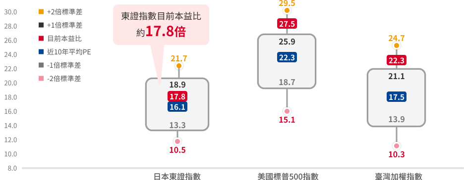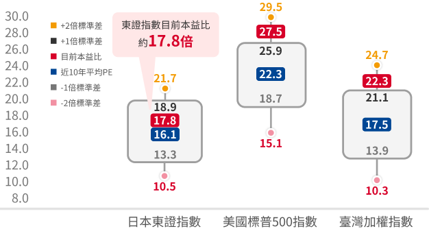 資料來源:Bloomberg,野村投信整理,2015/12/22-2025/12/22。投資人無法直接投資指數,本資料僅為市場歷史數值統計概況說明,非基金績效表現之預測。本基金投資者是申請購買野村投信發行之「野村日本東證ETF基金」,而非直接投資於東京證交所掛牌之連結標的基金1306.JP。標的基金或標的指數之歷史資料回測結果或殖利率之表現,不代表本基金投資組合之實際報酬率或配息率及未來績效保證,不同時間進場投資,其結果將可能不同,且並未考量交易成本,請投資人特別留意。
