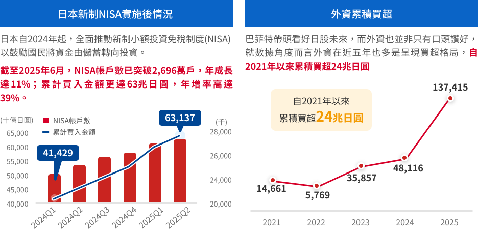 (左圖)資料來源:日本金融廳,野村投信整理,2025/6/30。(右圖)資料來源:日本財務省,野村投信整理,2021/1/3-2025/12/13。