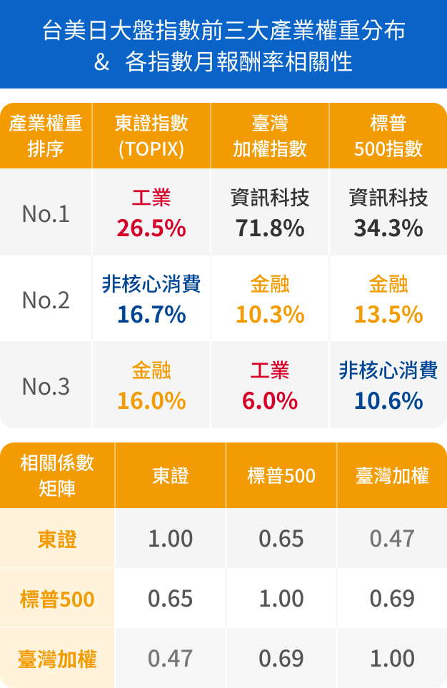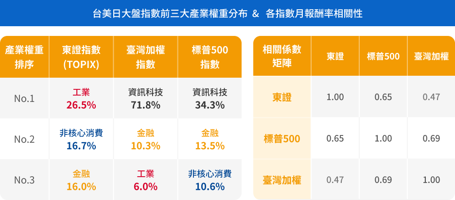 權重分布資料來源:Bloomberg,野村投信整理,2025/12/22。月報酬相關性資料來源:Bloomberg,野村投信整理,2015/12/22-2025/12/22。投資人無法直接投資指數,本資料僅為市場歷史數值統計概況說明,非基金績效表現之預測。