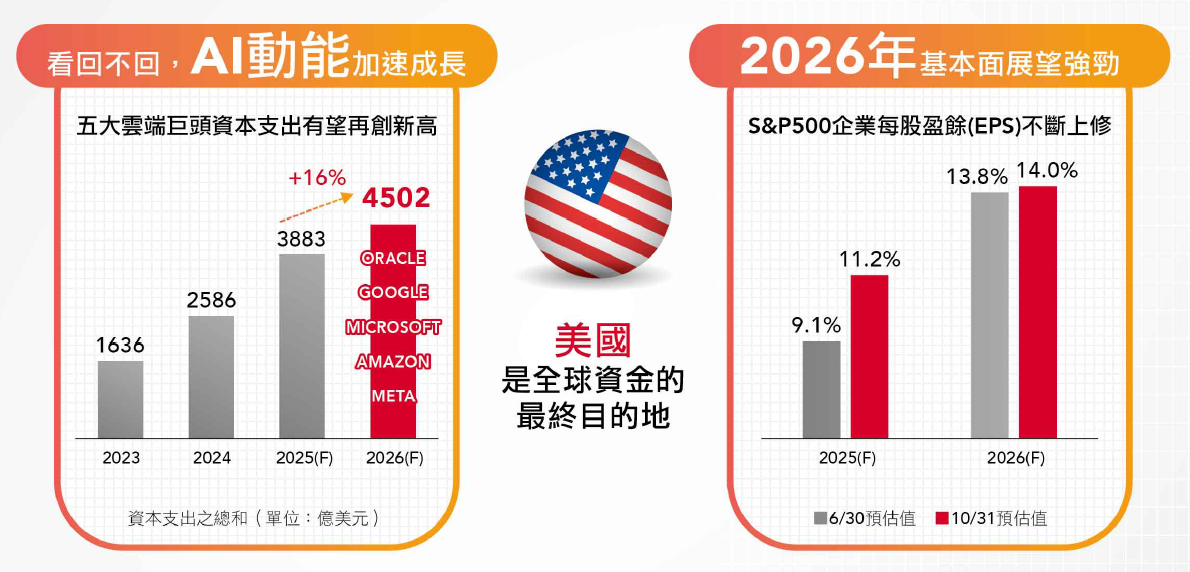 在AI資本支出持續投入下,科技龍頭以穩健本業與自由現金流支撐投資循環,企業獲利動能具延續性。
