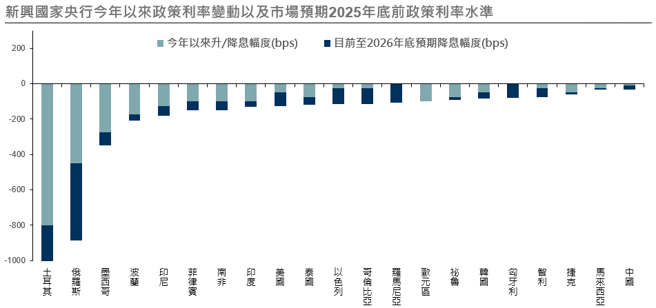 在全球降息循環下,新興市場債具備相對較高利差與收益吸引力,且多數國家基本面改善、違約風險可控,有助提升債券組合的收益來源。